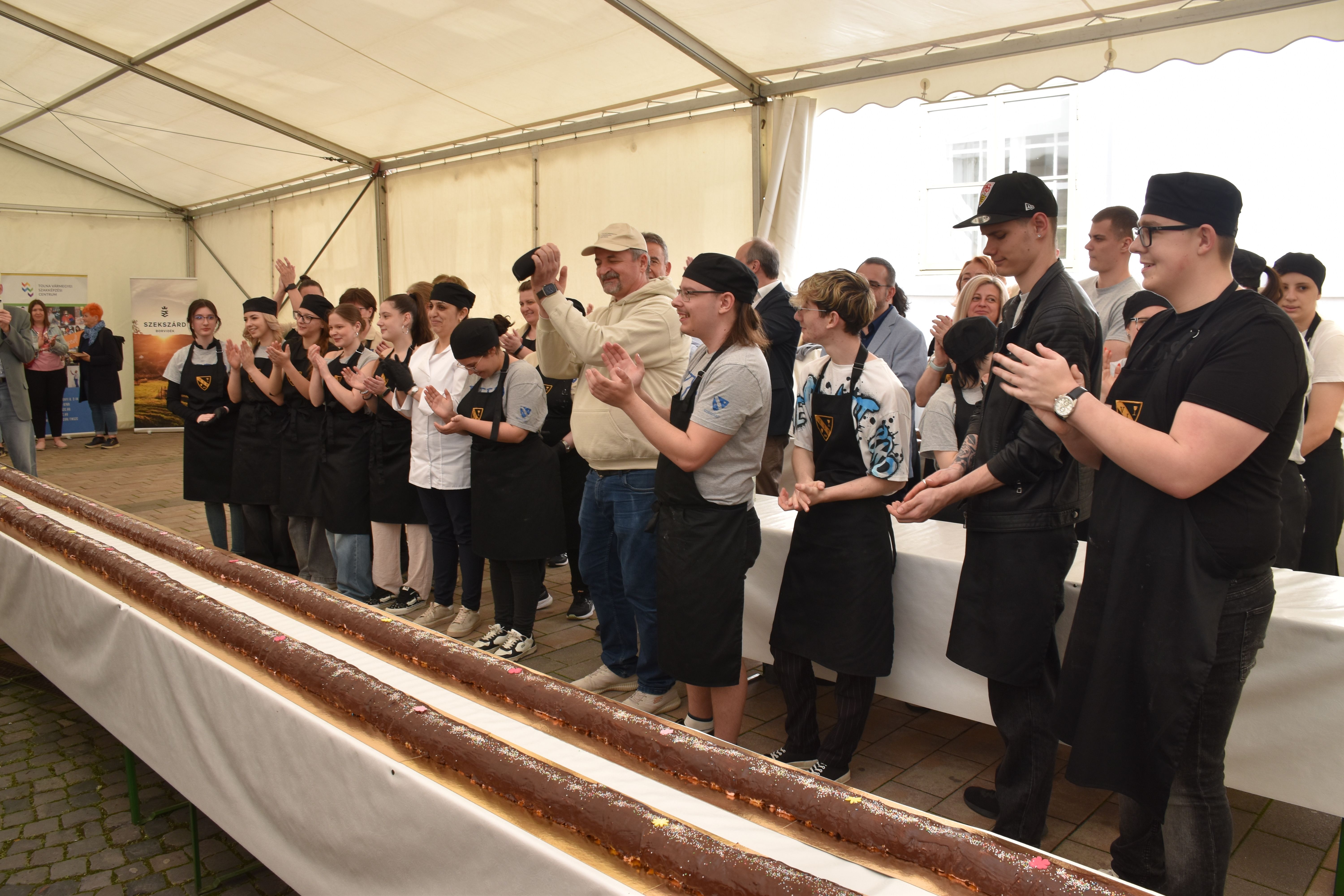 Új magyar rekord született húsvét hétfőn Szekszárdon: a Tolna Vármegyei Szakképzési Centrum Hunyadi Mátyás Vendéglátó és Turisztikai Technikum és Szakképző Iskola oktatói és tanulói 101 méter hosszú méteres kalácsot állítottak össze a Béla király téren.